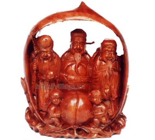 Tượng Phúc Lộc Thọ 100% gỗ Hương. Hoàn thiện bằng sơn PU, trong ngoài như nhau.