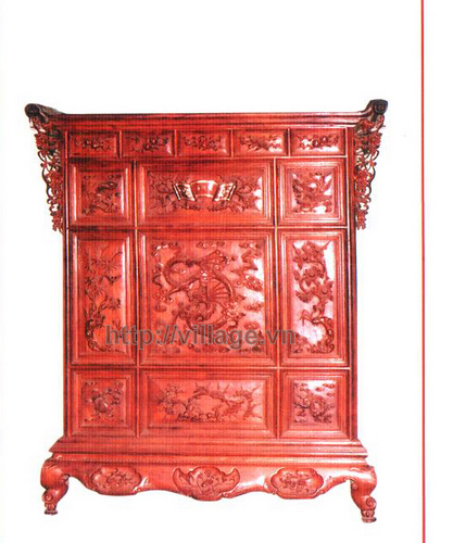 Tủ thờ gia tiên gỗ Hương (175cm x 50cm x 127cm)