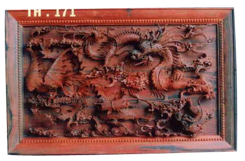 Tranh rồng 100% gỗ Hương. Hoàn thiện bằng sơn PU, trong ngoài như nhau.