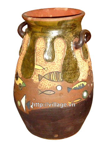 Lọ hoa gốm cách điệu có quai (25cm x 30cm)
