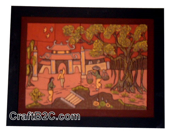 Tranh Sân Đình gốm Phù Lãng (80cm x 50cm)