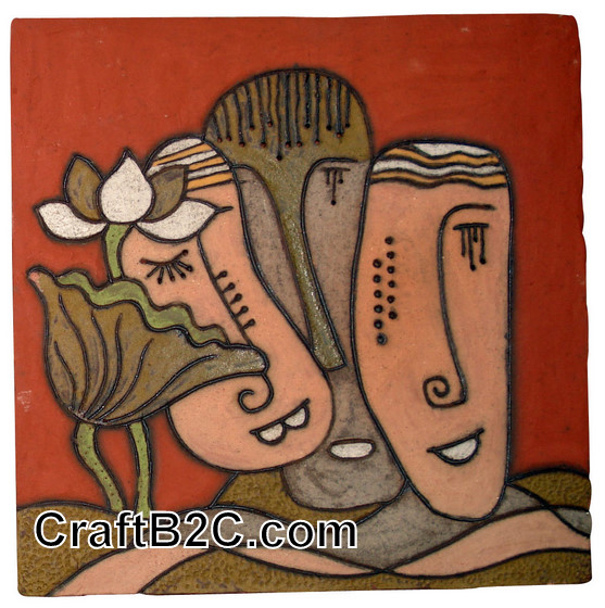 Tranh gốm trừu tượng: Khuôn mặt và hoa sen
