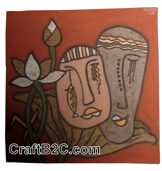 Tranh gốm trừu tượng: Đôi lứa và hoa sen