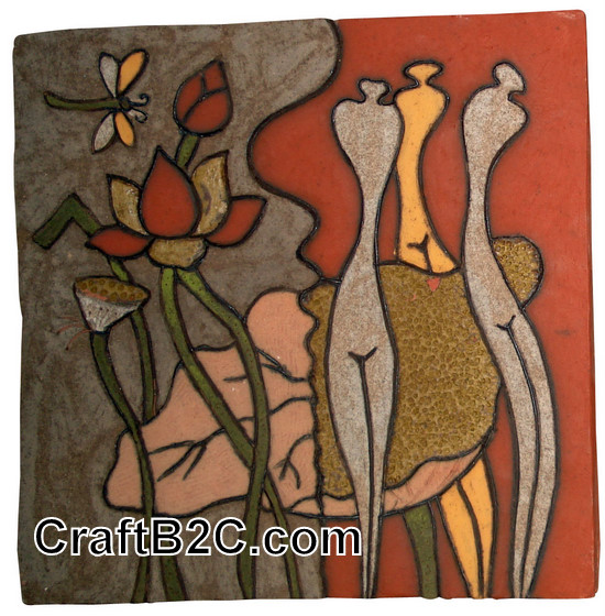 Tranh gốm trừu tượng: Con người và Sen (30cm x 30cm)