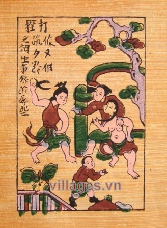Tranh đông hồ đánh ghen (26cm x 37cm)