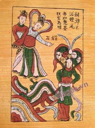 Vua liền làm lễ nhường ngôi cho Thạch Sanh. Khi lên ngôi công việc đầu tiên của Thạch Sanh là xóa thuế, phóng thích tù nhân, và khuyến khích muôn dân trăm họ theo nghề nông trang.Từ đó, nhân dân mới được yên ổn làm ăn nhà nhà được no ấm đông vui. Giá trên áp dụng cho kích thước 35 x 97 cm, đi kèm khung Kích thước khác: 25 x 70 cm Tranh được vẽ có màu, không màu. Có mành tre cho kích thước 25 x 70 cm Khung làm bằng tre (hun khói), gỗ.
