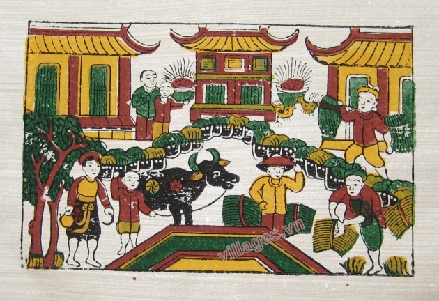 Tranh nhà nông trong mùa thu hoạch (37cm x 26cm)