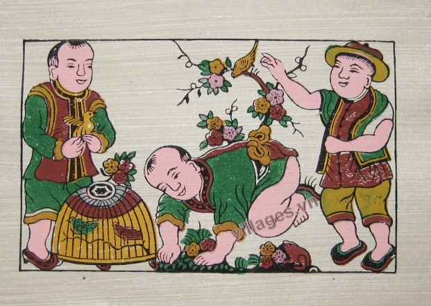 Trong mỗi người chúng ta - nhất là những ai có tình yêu thiên nhiên - sẽ cảm thấy rất vui khi nghe được tiếng chim hót giữa một ngày nắng ấm. Tiếng chim sâu hót trong buổi bình minh, khi mặt trời vừa thức dậy. Tiếng chim cu gù giữa buổi trưa hè hay tiếng chim vịt gọi bạn vào lúc hoàng hôn chật vật...đều mang lại cho chúng ta những tình cảm dạt dào, nỗi xúc động lâng lâng. Nỗi nhớ sẽ càng dâng cao, dạt dào như sóng cồn khi mà bạn có gốc gác từ một vùng quê yên bình nào đó... Nếu bạn là người yêu thiên nhiên, yêu cuộc sống thì bạn sẽ yêu cả tiếng chim. Trong tranh là hình ảnh hai con chim nhỏ bị nhôt vào trong lồng thể hiện nói lên phong tục tập quán hủ lậu của nhân ta thời xưa
