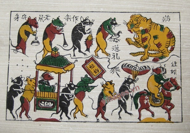 Chuột được nhân hóa thành người, thể hiện thực trạng của người khá giả trong thời phong kiến.