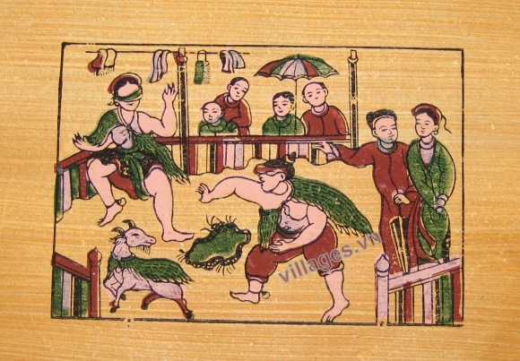 Tranh đông hồ bịt mắt bắt dê (26cm x 37cm)