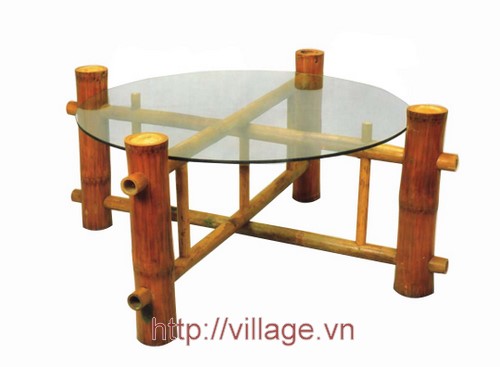 Bàn tre tròn mặt kính sang trọng, có bốn chân bằng tre, rất phù hợp khi ngồi uống trà, bàn công việc hoặc nghỉ ngơi