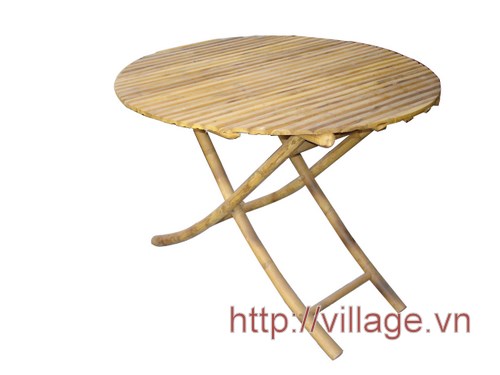 Bàn tre tròn có chân gập được, màu tự nhiên, được làm trên chất liệu tre tự nhiên, phù hợp với công việc, nghỉ ngơi, và sinh hoạt trong gia đình