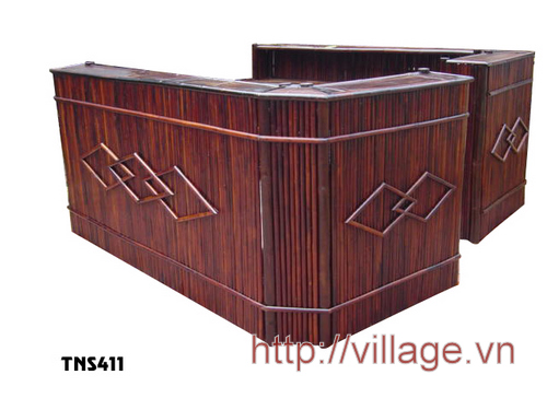 Quầy bar được thiết kế và sản xuất trên chất liệu tre hun khói, màu sắc đẹp và chắc chắn, phù hợp khi dùng vào các vị trí như tiếp tân, quầy bar...