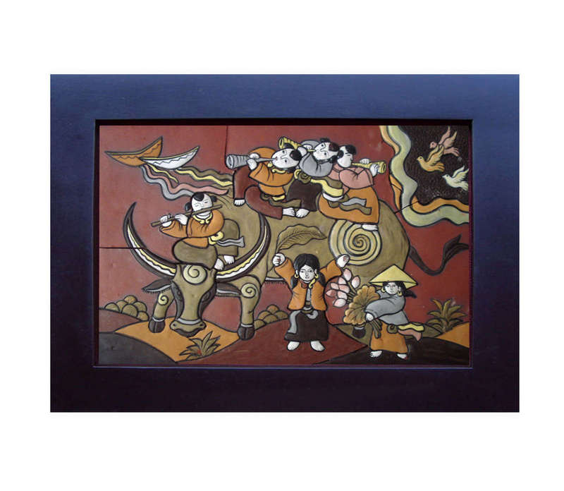 Tranh trẻ em vui chơi. gốm Phù Lãng (60cm x 40cm)