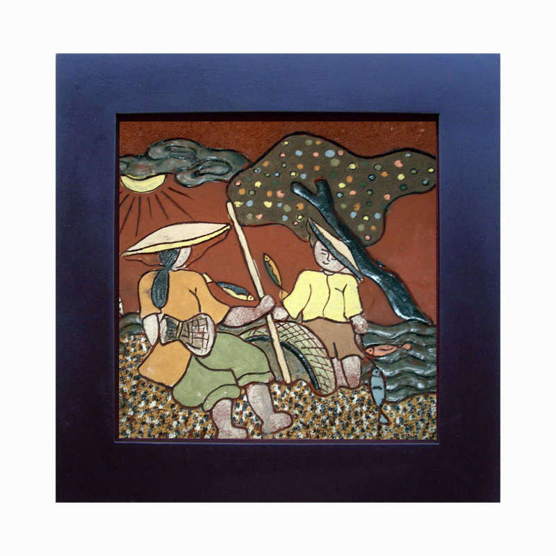 Tranh câu cá, làng nghề gốm Phù Lãng (40cm x 40cm)