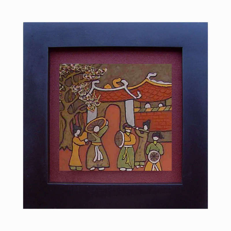 Tranh cô gái nón thúng quai thao, gốm Phù Lãng (25cm x 25cm)