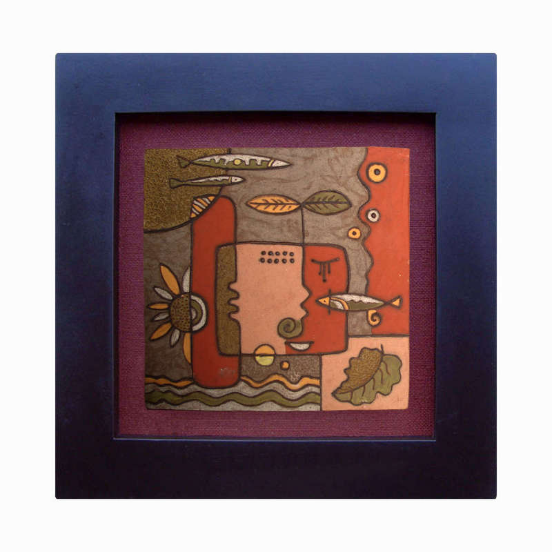 Tranh trừu tượng gốm quê, làng nghề gốm sứ Phù Lãng (25cm x 25cm)