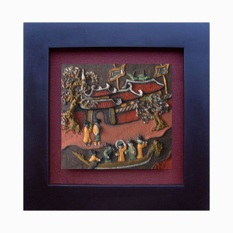 Tranh hát quan họ trên thuyền, gốm Phù Lãng (25cm x 25cm)