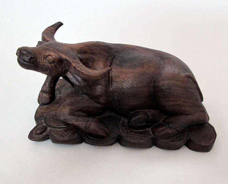 Trâu nằm nghỉ ngơi, chất liệu gỗ chiêu liêu - chiu liu (26cm x 15cm x 16cm)