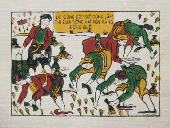 Tranh ngày mùa vui cấy cày, tranh dân gian Đông Hồ (37cm x 26cm)