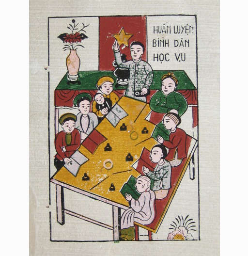 Tranh Bình Dân Học Vụ, tranh dân gian Đông Hồ (26cm x 37cm)