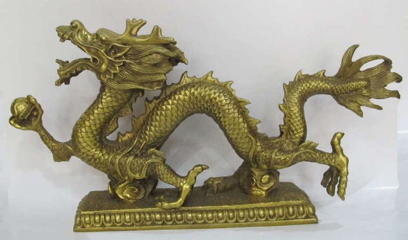 Tượng rồng chất liệu đồng vàng, đúc đồng Đại Bái (30cm x 15cm)