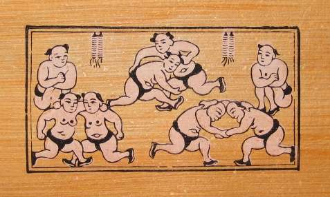 Bên cạnh đó, ta cũng chú ý đến hai tràng pháo ở phía bên trên bức tranh thể hiện không khí mùa xuân. Hai võ sĩ chờ hai bên ngồi hai tay ôn chân để khỏi rét và hình dáng theo mô hình hình chữ nhật đứng không vững thể hiện sự nôn nóng đợi đến lượt mình lên sới.