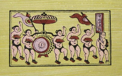 Tranh rước trống thuộc dòng tranh chúc tụng trong tranh dân giân Đông Hồ.