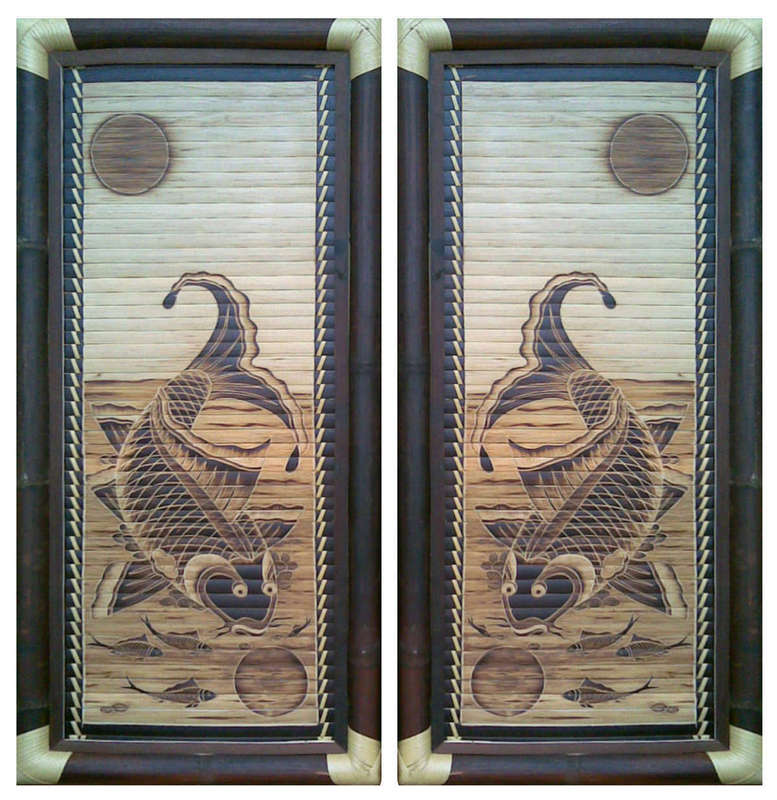 Tranh tre Cá Chép ngắm Trăng, chất liệu tre hun khói (35cm x 97cm)