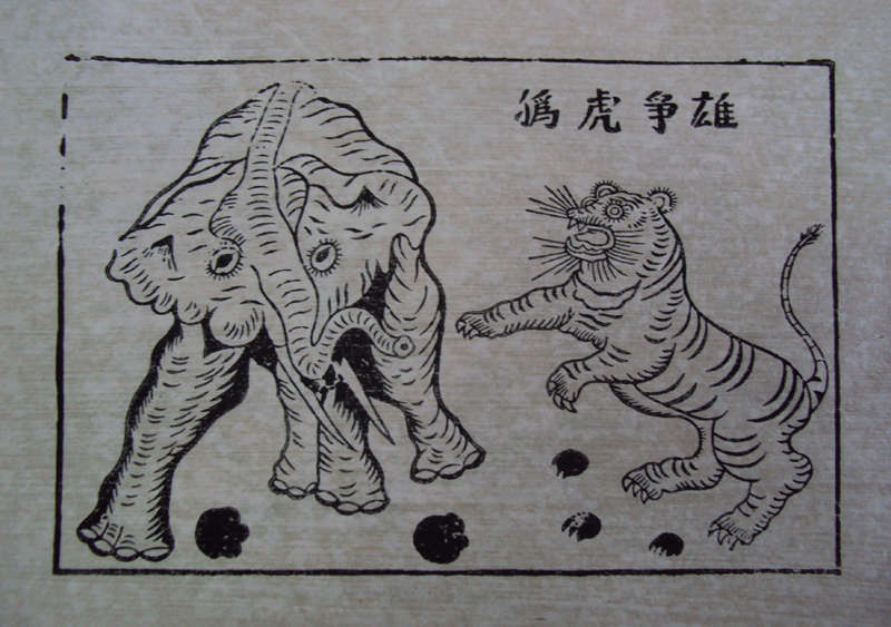 Tranh hổ và voi thuộc dòng tranh chúc tụng trong tranh dân gian Đông Hồ.